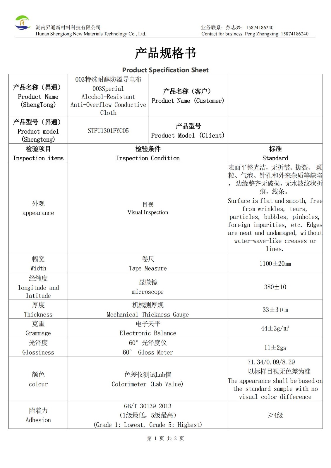 30微米耐磨黑色导电布是以聚酯纤维为基材,双面覆铜镍合金提供基础导电性(表面电阻≤0.05Ω),并单面涂覆黑色水性石墨烯涂层制成的高性能复合材料。其核心结构为黑色耐磨表面(哑黑) 搭配 银灰色导电面,提供双面导电功能。产品实测厚度为33-34μm,具有优异的导电性能。其哑光黑色面呈现低亮光效果(光泽度3.2-3.4gs),颜色稳定(色差值25.74/0.05/0.12),并特别强调耐磨特性。该导电布采用纯水性环保涂层工艺制造,确保无VOC残留,符合安全环保要求。产品幅宽为1100±20mm,可直接模切加工或贴合胶带,便于集成应用,适用于需要高导电性、耐磨性及环保要求的电磁屏蔽、接地等电子应用场景。