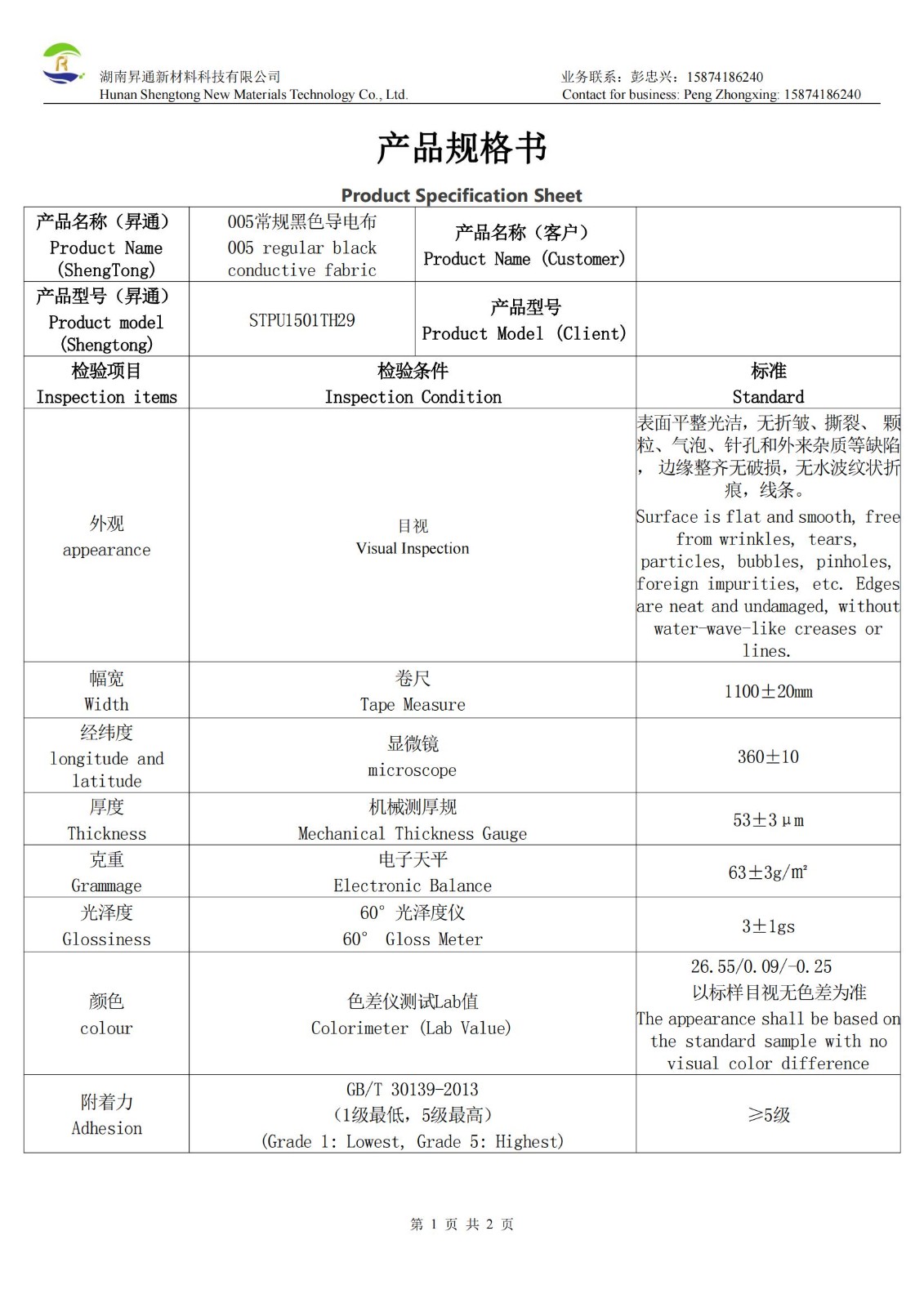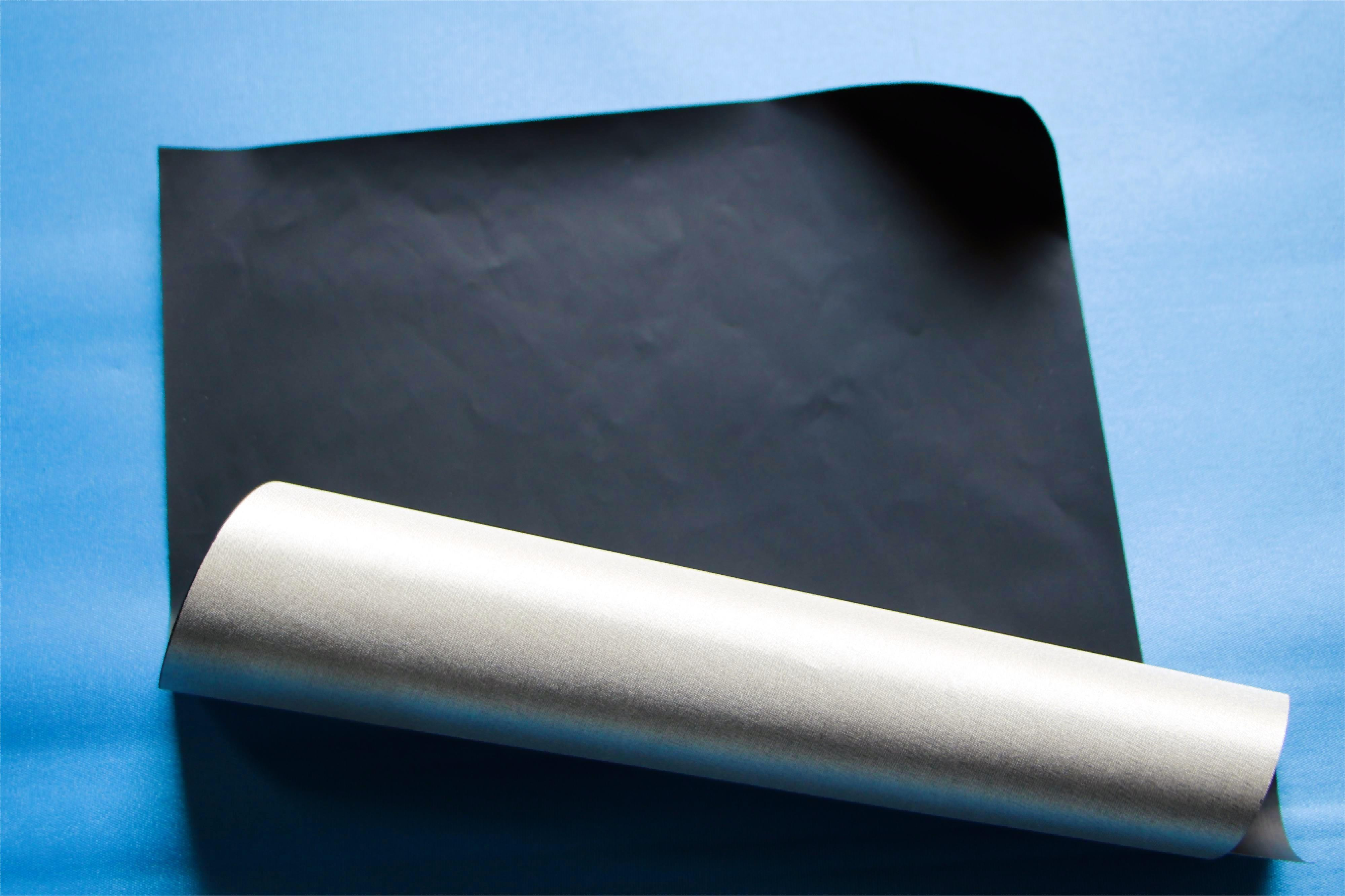 30微米耐磨黑色导电布是以聚酯纤维为基材,双面覆铜镍合金提供基础导电性(表面电阻≤0.05Ω),并单面涂覆黑色水性石墨烯涂层制成的高性能复合材料。其核心结构为黑色耐磨表面(哑黑) 搭配 银灰色导电面,提供双面导电功能。产品实测厚度为33-34μm,具有优异的导电性能。其哑光黑色面呈现低亮光效果(光泽度3.2-3.4gs),颜色稳定(色差值25.74/0.05/0.12),并特别强调耐磨特性。该导电布采用纯水性环保涂层工艺制造,确保无VOC残留,符合安全环保要求。产品幅宽为1100±20mm,可直接模切加工或贴合胶带,便于集成应用,适用于需要高导电性、耐磨性及环保要求的电磁屏蔽、接地等电子应用场景。