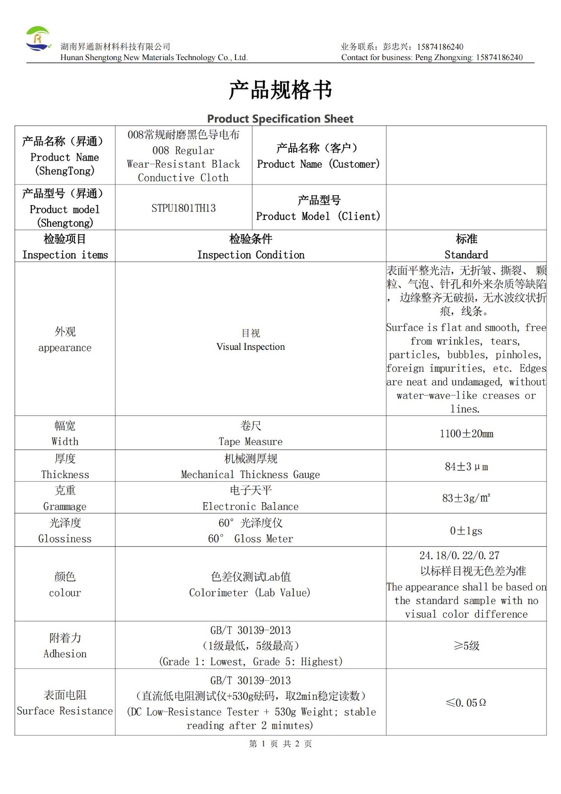 The 80-micron wear-resistant black conductive cloth is a high-performance composite material based on polyester fibers, with both sides coated with copper-nickel alloy to provide basic conductivity (surface resistance ≤ 0.05Ω) and one side coated with a black water-based graphene coating. It has a thickness of 83-85μm, a surface resistance of ≤ 0.05Ω, a glossiness of 0.3-0.4gs, and stable color difference values (24.18/0.22/0.27), presenting a deep black matte appearance. Adopting a pure water-based coating process, it has no VOC residues and can be directly die-cut or used with an adhesive layer. The product complies with the GB/T 30139-2013 standard, with an adhesion of ≥ grade 5, a width of 1100±20mm, and a grammage of 63±3g/㎡, and it boasts excellent flatness and edge integrity.